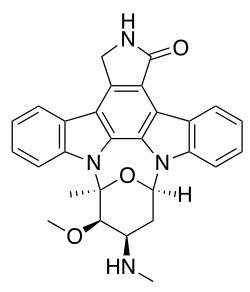 Staurosporine (antibiotic AM-2282 or STS) is a natural product originally isolated in 1977 from the bacterium Streptomyces staurosporeus.[1] It was the first of over 50 alkaloids that were discovered to share this type of bis-indole chemical structure. The chemical structure of staurosporine was elucidated by X-ray crystalography in 1994.[2]