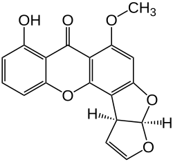 Sterigmatocystin is a toxic metabolite structurally closely related to the aflatoxins as it is the penultimate precursor of aflatoxins B1 and G1.[1] It contains a xanthone nucleus attached to a bifuran structure. Sterigmatocystin is mainly produced by the fungi Aspergillus nidulans and A. versicolor.