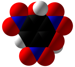 Styphnic acid (from Greek stryphnos "astringent"[1]), or 2,4,6-trinitro-1,3-benzenediol, is a yellow astringent acid that forms hexagonal crystals. It is used in the manufacture of dyes, pigments, inks, medicines, and explosives such as lead styphnate. It is itself a low-sensitivity explosive, similar to picric acid, but explodes upon rapid heating.[2]