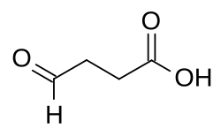 Succinic semialdehyde (SSA) is a GABA and GHB metabolite. It is formed from GABA by the action of GABA transaminase (4-aminobutyrate aminotransferase) and further oxidised to become succinic acid, which enters TCA cycle. SSA is oxidized into succinic acid by the enzyme succinic semialdehyde dehydrogenase, which uses NAD+ as a cofactor.[2][3] When the oxidation of succinic semialdehyde to succinic acid is impaired, accumulation of succinic semialdehyde takes place which leads to succinic semialdehyde dehydrogenase deficiency.[3]