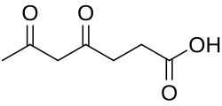 Succinylacetone is a toxic organic compound that arises as an abnormal metabolite in tyrosine catabolism. In normal tyrosine catabolism, fumarylacetoacetate hydrolase converts fumarylacetoacetate to fumarate and acetoacetate. Deficiency of fumarylacetoacetate hydrolase leads to the accumulation of fumarylacetoacetate, which is subsequently converted to succinylacetoacetate. Succinylacetoacetate is then decarboxylated to form succinylacetone.