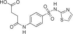Succinylsulfathiazole (also known as sulfasuxidine) is a sulfonamide.[1][2] It is also spelled as succinylsulphathiazole. It is a white or yellow-white crystalline powder. It dissolves in aqueous solutions of alkali hydroxides and carbonates but is very slightly soluble in water.