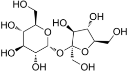 Sucralose is an artificial sweetener and sugar substitute. In the European Union, it is also known under the E number E955. It is produced by chlorination of sucrose, selectively replacing three of the hydroxy groups—in the C1 and C6 positions of the fructose portion and the C4 position of the glucose portion—to give a 1,6-dichloro-1,6-dideoxyfructose–4-chloro-4-deoxygalactose disaccharide. Sucralose is about 600 times sweeter than sucrose (table sugar),[2][3] 3 times as sweet as both aspartame and acesulfame potassium, and 2 times as sweet as sodium saccharin.[2]