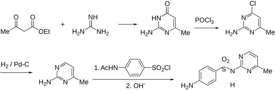 Sulfamerazine synthesis:[ 1] [ 2] U.S. patent 2,378,813