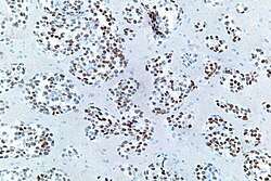 Sulfatide levels in these cancer lines and tissues may vary. For example, the levels of sulfatide are much lower in undifferentiated small cell carcinoma tissues and primary lung squamous cell carcinoma tissues in humans than in primary lung adenocarcinoma tissue in humans.[3] In human ovarian cancers, sulfatide levels are much higher in malignant ovarian cancers than in benign ovarian cancers.[2][3] Other cancers such as Wilms' tumor show no expression of sulfatide. Therefore, it appears that such increased levels of sulfatide are not universal in every form of cancer, and more experimentation must be done to confirm that elevated levels of sulfatide are not just artifacts of cultured cancer cell lines.[3]