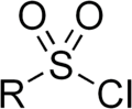 In chemistry, a sulfonyl halide consists of a sulfonyl (>S(=O)2) group singly bonded to a halogen atom. They have the general formula RSO2X, where X is a halogen. The stability of sulfonyl halides decreases in the order fluorides > chlorides > bromides > iodides, all four types being well known. The sulfonyl chlorides and fluorides are of dominant importance in this series.[1][2]