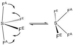 The 19F NMR spectrum of SF4 reveals only one signal, which indicates that the axial and equatorial F atom positions rapidly interconvert via pseudorotation.[4]