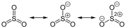The molecule SO3 is trigonal planar. As predicted by VSEPR theory, its structure belongs to the D3h point group. The sulfur atom has an oxidation state of +6 and may be assigned a formal charge value as low as 0 (if all three sulfur-oxygen bonds are assumed to be double bonds) or as high as +2 (if the Octet Rule is assumed).[7] When the formal charge is non-zero, the S-O bonding is assumed to be delocalized. In any case the three S-O bond lengths are equal to one another, at 1.42 Å.[1] The electrical dipole moment of gaseous sulfur trioxide is zero.
