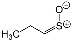 syn-Propanethial S-oxide (or (Z)-propanethial S-oxide), a member of a class of organosulfur compounds known as thiocarbonyl S-oxides (formerly "sulfines"),[2] is a volatile liquid that acts as a lachrymatory agent (triggers tearing and stinging on contact with the eyes).
