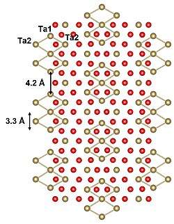 Tantalum also forms a tantalum rich telluride with the approximate formula Ta1.6Te that is unusual in that it forms dodecagonal chalcogenide quasicrystals, a formation that cannot occur in a normal crystal because it does not result in a periodic crystal lattice.[4]