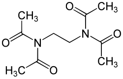Tetraacetylethylenediamine, commonly abbreviated as TAED, is an organic compound with the formula (CH3C(O))2NCH2CH2N(C(O)CH3)2. It is a white solid commonly used as a bleach activator in laundry detergents and in the production of paper pulp. TAED is synthesized through the acetylation of ethylenediamine.