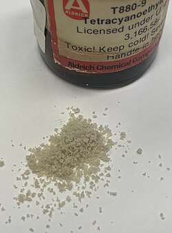 Tetracyanoethylene (TCNE) is organic compound with the formula C2(CN)4. It is a colorless solid, although samples are often off-white. It is an important member of the cyanocarbons.