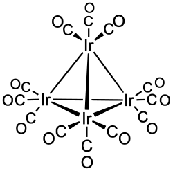 Tetrairidium dodecacarbonyl is the chemical compound with the formula Ir4(CO)12. This tetrahedral cluster is the most common and most stable "binary" carbonyl of iridium. This air-stable species is only poorly soluble in organic solvents.[1][2][3] It has been used to prepare bimetallic clusters and catalysts, e.g. for the water gas shift reaction, and reforming, but these studies are of purely academic interest.