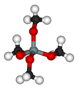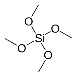 Tetramethyl orthosilicate (TMOS) is the chemical compound with the formula Si(OCH3)4. This molecule consists of four methoxy groups bonded to a silicon atom. It is the tetramethyl ester of orthosilicic acid. The basic properties are similar to the more popular tetraethyl orthosilicate, which is usually preferred because the product of hydrolysis, ethanol, is less toxic than methanol.