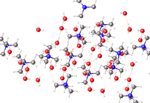 This report also provides details for isolation of TMAH as its pentahydrate, noting the existence of a trihydrate, and emphasizes the avidity which even the former exhibits for atmospheric moisture and carbon dioxide. These authors reported a melting point of 62–63 °C for the pentahydrate, and solubility in water measured averagely around 220 g/100 mL at 15 °C.