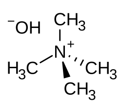 Tetramethylammonium hydroxide (TMAH or TMAOH) is a quaternary ammonium salt with molecular formula N(CH3)4+OH−. It is commonly encountered in form of concentrated solutions in water or methanol. TMAH in solid state and its aqueous solutions are all colorless, but may be yellowish if impure. Although TMAH has virtually no odor when pure, samples often have a strong fishy smell due to presence of trimethylamine which is a common impurity. TMAH has several diverse industrial and research applications.