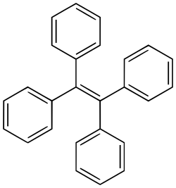 Tetraphenylethene (TPE) is an organic chemical compound with the formula Ph2C=CPh2, where Ph = phenyl (C6H5). Samples have been described as a yellow solid, but the compound iscolorless. The molecule is crowded such that all four phenyl groups are twisted out of the plane defined by the center six carbon atoms.[3] Tetraphenylethylene is used as a precursor to other organic compounds, often in the area of supramolecular chemistry.