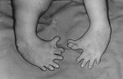 In the late 1950s and early 1960s, more than 10,000 children in 46 countries were born with deformities, such as phocomelia, as a consequence of thalidomide use.[80] The severity and location of the deformities depended on how many days into the pregnancy the mother was before beginning treatment, with the time-sensitive window occurring approximately between day 20 and day 36 post-fertilisation.[51] Thalidomide taken on the 20th day of pregnancy caused central brain damage, day 22 the ears and face, day 24 the arms, and leg damage would occur if taken up to day 28.[81]