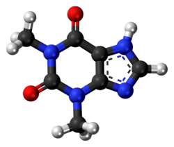 Theophylline, also known as 1,3-dimethylxanthine, is a drug that inhibits phosphodiesterase and blocks adenosine receptors.[1] It is used to treat chronic obstructive pulmonary disease (COPD) and asthma.[2] Its pharmacology is similar to other methylxanthine drugs (e.g., theobromine and caffeine).[1] Trace amounts of theophylline are naturally present in tea, coffee, chocolate, yerba mate, guarana, and kola nut.[1][3]