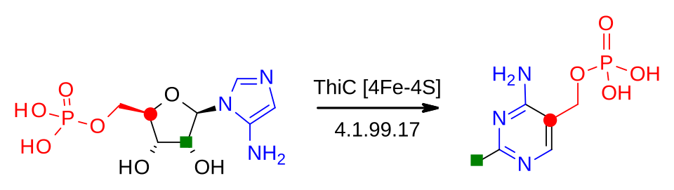 44. ^ Chatterjee A, Hazra AB, Abdelwahed S, Hilmey DG, Begley TP (November 2010). "A "radical dance" in thiamin biosynthesis: mechanistic analysis of the bacterial hydroxymethylpyrimidine phosphate synthase". Angewandte Chemie. 49 (46): 8653–6. Bibcode:2010ACIE...49.8653C. doi:10.1002/anie.201003419. PMC 3147014. PMID 20886485.