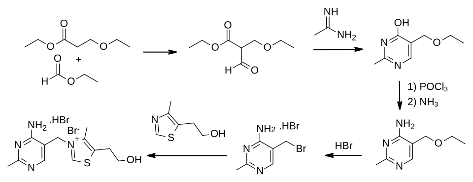 52. ^ Jiang M, Liu M, Huang H, Chen F (2021). "Fully Continuous Flow Synthesis of 5-(Aminomethyl)-2-methylpyrimidin-4-amine: A Key Intermediate of Vitamin B1". Organic Process Research & Development. 25 (10): 2331–7. doi:10.1021/acs.oprd.1c00253. S2CID 242772232.