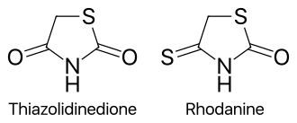 The chemical structure of thiazolidinedione and rhodanine
