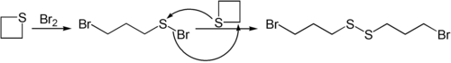 Nucleophiles like butyllithium can open the ring in thietane.[12] Thietane also reacts with bromine.[13]