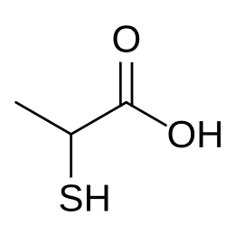 Thiolactic acid is the organosulfur compound with the formula CH3CH(SH)CO2H. The molecule contains both carboxyl and thiol functional groups, −C(=O)−OH and −SH respectively. It is structurally related to lactic acid by the interchange of −SH for −OH. It is a colorless oil.