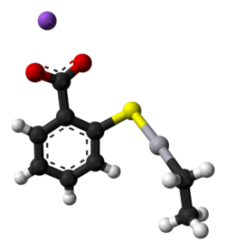 One of the earliest synthetic methods was a reaction between ethylmercury chloride and thiosalicylic acid in alkaline solution, with subsequent acidification.[13] Various minor modifications of this are possible, but the modern synthesis is essentially the same.
