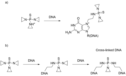 - ^ Cohen NA, Egorin MJ, Snyder SW, Ashar B, Wietharn BE, Pan SS, et al. (August 1991). "Interaction of N,N',N-triethylenethiophosphoramide and N,N',N-triethylenephosphoramide with cellular DNA". Cancer Research. 51 (16): 4360–4366. PMID 1714342.