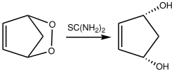 - ^ Gupta, D., Soman, G., and Dev, S. (1982). "Thiourea, a convenient reagent for the reductive cleavage of olefin ozonolysis products". Tetrahedron. 38 (20): 3013–3018. doi:10.1016/0040-4020(82)80187-7.