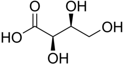 Threonic acid is a sugar acid derived from threose. The l-isomer is a metabolite of ascorbic acid (vitamin C).[1] One study suggested that because l-threonate inhibits DKK1 expression in vitro, it may have potential in treatment of androgenic alopecia.[2]