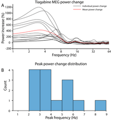 - ^ Shaw AD, Chandler HL, Hamandi K, Muthukumaraswamy SD, Hammers A, Singh KD (September 2021). "Tiagabine induced modulation of oscillatory connectivity and activity match PET-derived, canonical GABA-A receptor distributions". European Neuropsychopharmacology. 50: 34–45. doi:10.1016/j.euroneuro.2021.04.005. PMC 8415204. PMID 33957336.