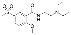 Tiapride is a drug that selectively blocks D2 and D3 dopamine receptors in the brain. It is used to treat a variety of neurological and psychiatric disorders including dyskinesia, alcohol withdrawal syndrome, negative symptoms of psychosis, and agitation and aggression in the elderly.[2] A derivative of benzamide, tiapride is chemically and functionally similar to other benzamide antipsychotics such as sulpiride and amisulpride known for their dopamine antagonist effects.