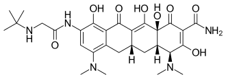 - ^ Sum PE, Lee VJ, Testa RT, Hlavka JJ, Ellestad GA, Bloom JD, et al. (January 1994). "Glycylcyclines. 1. A new generation of potent antibacterial agents through modification of 9-aminotetracyclines". Journal of Medicinal Chemistry. 37 (1): 184–188. doi:10.1021/jm00027a023. PMID 8289194.
