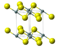 The compound crystallizes in the cadmium iodide motif, with the Sn(IV) situated in "octahedral holes' defined by six sulfide centers.[8]