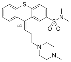 - ^ a b c Muren JF, Bloom BM (January 1970). "Thioxanthene psychopharmacological agents. II. 9-(3-aminopropylidene)-N,N-dimethylthioxanthene-2-sulfonamides". Journal of Medicinal Chemistry. 13 (1): 17–23. doi:10.1021/jm00295a005. PMID 5412109.