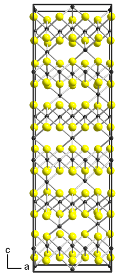 Titanium(III) sulfide is a black powder[1] that can also be crystalline or shiny.[2] The crystal has the nickel arsenide structure (hexagonal close-packed), with a coordination number of 6 for titanium.[1]