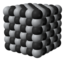 Titanium carbide, TiC, is an extremely hard (Mohs 9–9.5) refractory ceramic material, similar to tungsten carbide. It has the appearance of black powder with the sodium chloride (face-centered cubic) crystal structure.