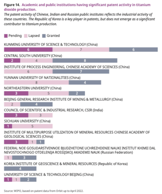 - ^ a b c World Intellectual Property Organization. (2023). "Patent Landscape Report: Production of titanium and titanium dioxide from ilmenite and related applications". www.wipo.int. Patent Landscape Reports. WIPO. doi:10.34667/tind.47029. Retrieved 13 November 2023.