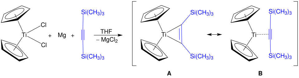 - ^ Rosenthal, Uwe; Burlakov, Vladimir V.; Arndt, Perdita; Baumann, Wolfgang; Spannenberg, Anke (2003). "The Titanocene Complex of Bis(trimethylsilyl)acetylene: Synthesis, Structure, and Chemistry". Organometallics. 22 (5): 884–900. doi:10.1021/om0208570.
