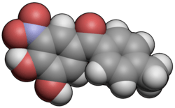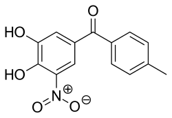 Tolcapone, sold under the brand name Tasmar, is a medication used to treat Parkinson's disease (PD). It is a selective, potent and reversible nitrocatechol-type inhibitor of the enzyme catechol-O-methyltransferase (COMT).[4] It has demonstrated significant liver toxicity, which has led to suspension of marketing authorisations in a number of countries.