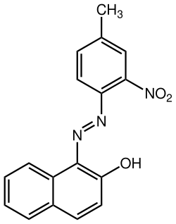 Toluidine red is an organic compound with the formula C10H6(OH)(N2C6H3(NO2)CH3). A dark red solid, the compound is classified as a azo dye consisting of a 2-naphthol group linked to a 2-nitro-4-methylphenyl substituent.[3] Toluidine red is a traditional pigment, found in oil paints.[4] Although once popular, it suffers as a pigment owing to "insufficient lightfastness and bleeding when incorporated into a paint system."[1]