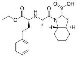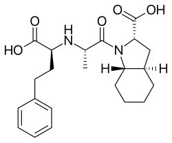 Trandolapril is an ACE inhibitor used to treat high blood pressure. It may also be used to treat other conditions. It is similar in structure to another ramipril but has a cyclohexane group. It is a prodrug that must be metabolized into its active form. It has a longer half-life when compared to other agents in this class.