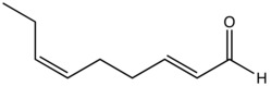 trans,cis-2,6-Nonadienal is an organic compound that is classified as a doubly unsaturated derivative of nonanal. The molecule consists of a α,β-unsaturated aldehyde with an isolated alkene group. The compound has attracted attention as the essence of cucumbers,[1][2] but it is also found in bread crust[3] and freshly cut watermelon.