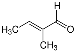 trans-2-Methyl-2-butenal is an organic compound with the formula CH3CH=C(CH3)CHO. This colorless liquid is a building block in organic synthesis. It is an α,β-unsaturated aldehyde related to the better-known crotonaldehyde. The European rabbit, Oryctolagus cuniculus, uses 2-methyl-2-butenal as a pheromone.[1] The rabbit pheromone, trans-2-methyl-2-butenal, was reported to be involved in the communication between species, defined under the class of "interomone."[2]