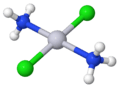 trans-Dichlorodiammineplatinum(II) is the trans isomer of the coordination complex with the formula trans-PtCl2(NH3)2, sometimes called transplatin.[1] It is a yellow solid with low solubility in water but good solubility in dimethylformamide. The existence of two isomers of PtCl2(NH3)2 led Alfred Werner to propose square planar molecular geometry.[2] It belongs to the molecular symmetry point group D2h.
