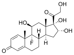 Triamcinolone is a glucocorticoid used to treat certain skin diseases, allergies, and rheumatic disorders among others.[6] It is also used to prevent worsening of asthma and chronic obstructive pulmonary disease (COPD).[6] It can be taken in various ways including by mouth, injection into a muscle, and inhalation.[6]