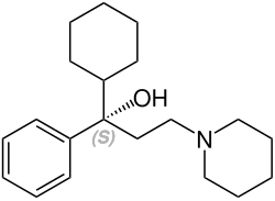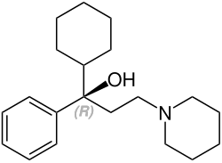 Trihexyphenidyl has a chiral center and two enantiomers. Medications are racemates.[27]