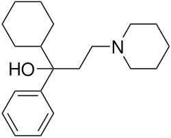 - ^ Doshay LJ, Constable K (August 1949). "Artane therapy for parkinsonism; a preliminary study of results in 117 cases". Journal of the American Medical Association. 140 (17): 1317–22. doi:10.1001/jama.1949.02900520003002. PMID 18137284.